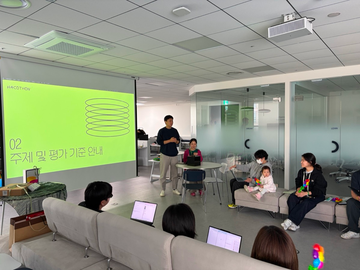 - 마지막으로 저와 윤해님, 민기님 등 세 명의 개발진이 멘토로 함께하면서, 개발을 하다가 막히는 부분부터 테스트까지 한 팀처럼 곁에서 도와드렸습니다. 주말이라 아이를 데리고 오신 참가자분도 계셨는데, 운영진이 육아까지 함께 맡아 드리며 모두가 무사히 결과물을 제출하실 수 있도록 지원했어요.