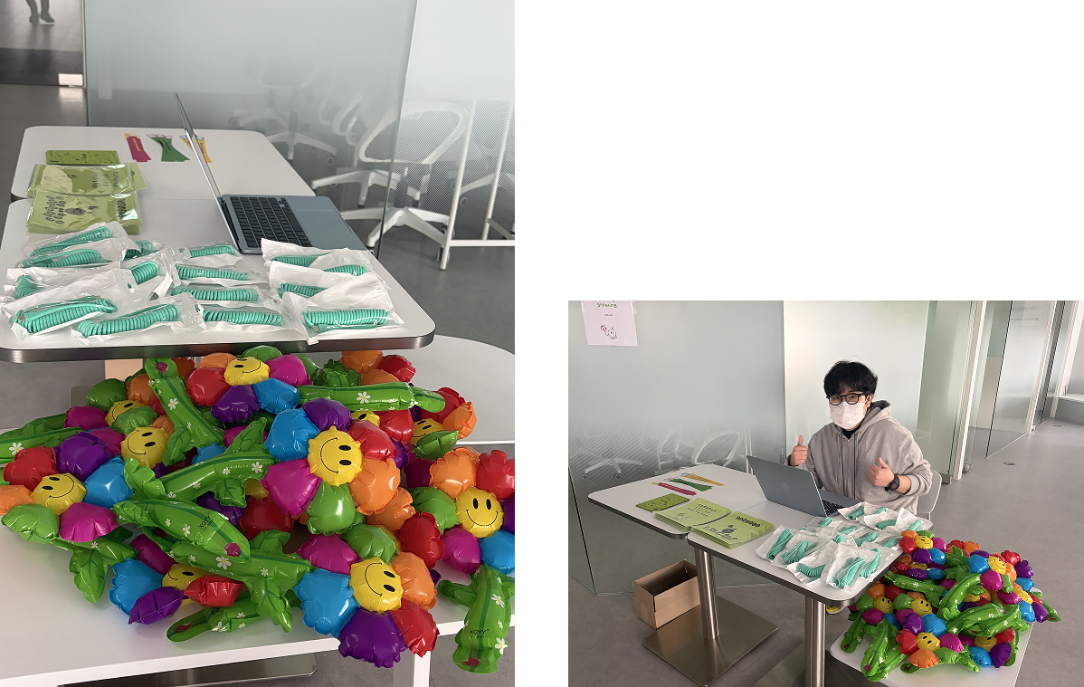이번 수상 혜택이 모두 상품이다 보니 해코톤도 자연스럽게 개인전으로 진행되었습니다. 그렇지만 각자 코딩만 하다 보면 적막해질 수 있을 것 같아 lean, dream, enjoy 세 팀으로 나누고 팀 팔찌를 하나씩 나눠드렸어요. 같은 팀끼리 고민을 나누며 으쌰으쌰 힘을 보태도 좋고, 각자의 자리에서 조용히 몰입해도 좋은 분위기로 구성했습니다.