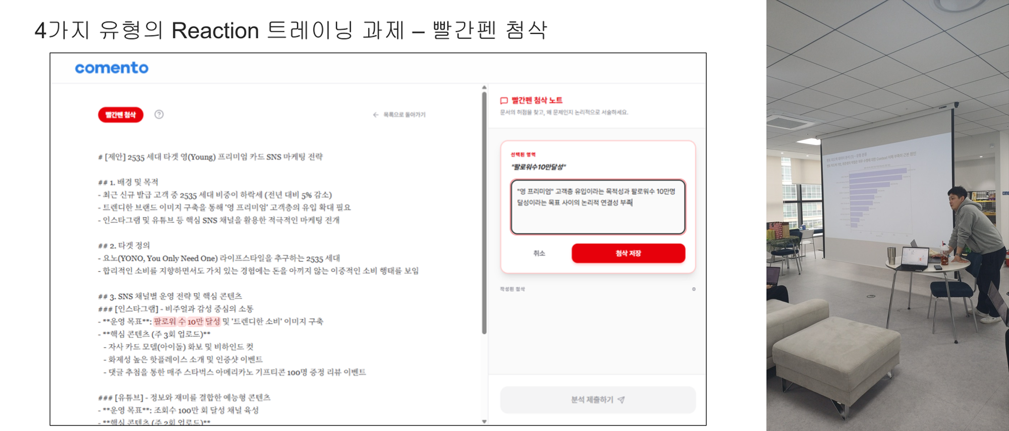 동완 님은 단순 직무 역량을 학습하는 걸 넘어, 현직자의 비평·평가 역량까지 학습한다는 접근으로 FM 트레이닝을 만드셨어요. 직무 Context에 대한 가장 직접적인 학습으로 역량 GAP을 극복하겠다는 구조적 설계가 특히 돋보였어요. 현직자의 시각을 학습시킨다는 한 문장이, 코멘토가 가진 데이터 자산의 진짜 레버리지 포인트를 꿰뚫고 있다고 느꼈습니다.