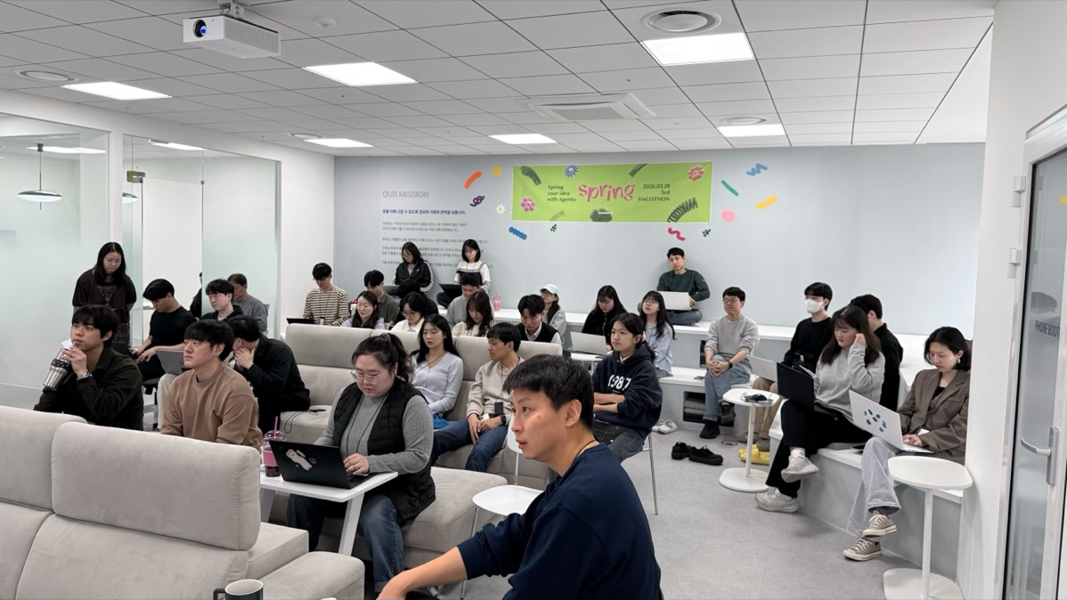 이번 해코톤의 주제는 봄이어서 스프링이기도 했지만, 동시에 ‘용수철’이라는 모티프를 담고 있었어요. 해코톤을 하다 보면 제자리에서 계속 맴도는 기분, 한 발자국도 앞으로 나아가지 않는 듯한 답답한 순간이 반드시 찾아오거든요. 그런데 막상 끝나고 멀리서 돌아보면, 그 시간들이 제자리걸음이 아니라 위로 조금씩 성장해 올라가고 있었던 순간이었다는 걸 깨닫게 됩니다. 이번 해코톤이 그런 도약의 순간이 되길 바라며 준비했고, 모든 분들이 스프링처럼 성장하는 시간을 보내셨길 바라며!